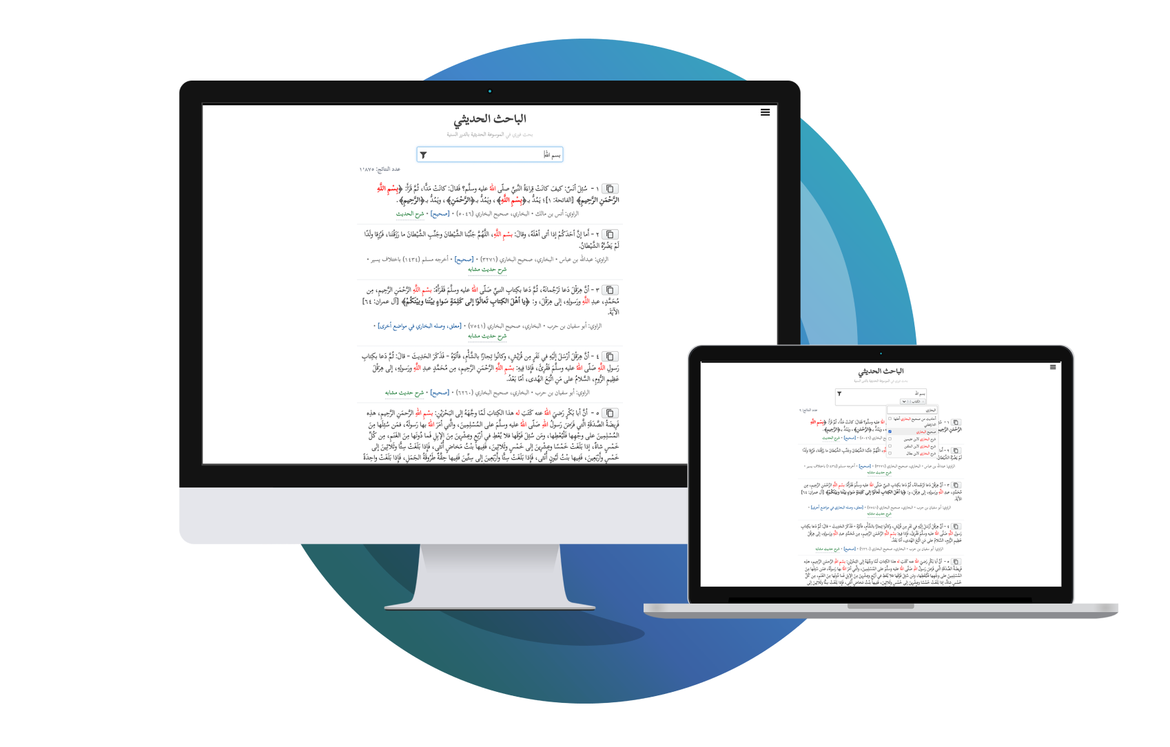 In collaboration with Nuqayah, we developed an intelligent Hadith search engine that searches across most Hadith books as well as other related texts. We merged various datasets using a dedicated, fast search database, providing filtering options, precision settings, and sorting features. By utilizing advanced AI NLP algorithms, we also present similar Hadiths to the one selected by the user, creating a smarter and more efficient search experience.